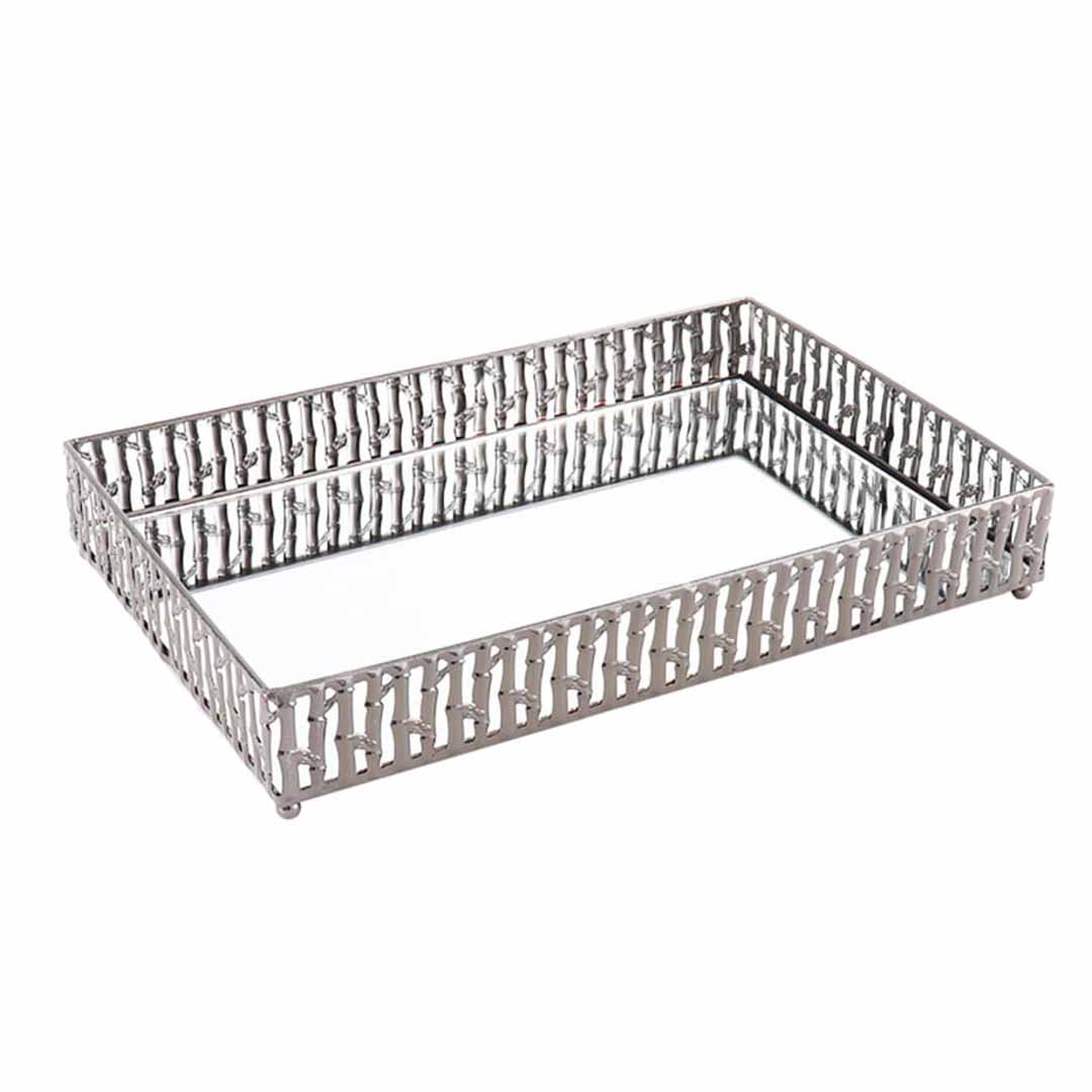 Bandeja Espelhada em Vidro e Metal Prata Escura 20x30 cm - Lavabo e Aparadores