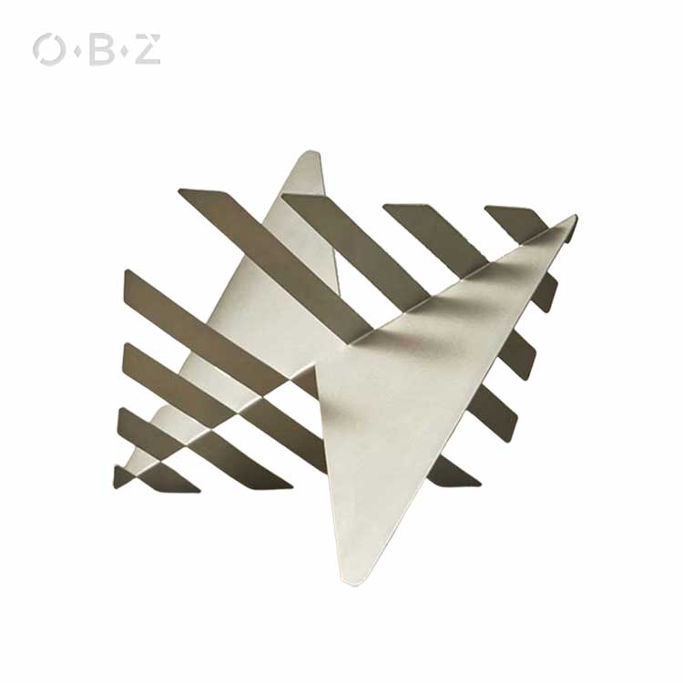 Escultura em Metal Geométrica cor PrataSeja cativado pela harmonia da forma e da geometria dessa Escultura em Metal Geométrica, uma peça que incorpora o espírito do concretismo, em uma homenagem às icônicas esculturas de Luiz Sacilotto.