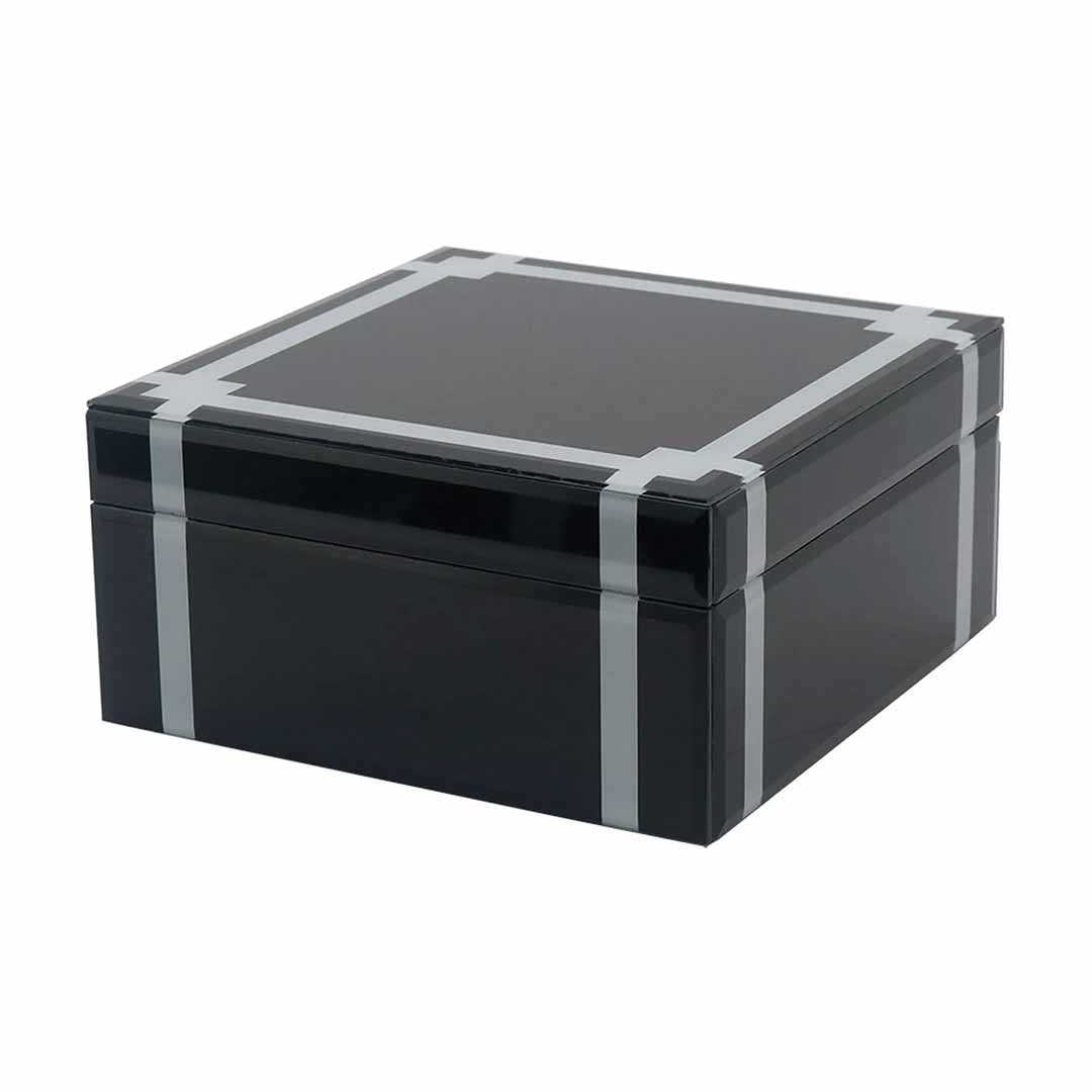 Com dimensões de 18cm de comprimento, 18cm de largura e 9cm de altura, este porta joias oferece espaço suficiente para organizar suas preciosidades. A combinação de madeira e vidro, com acabamento em preto e branco gelo, cria um padrão geométrico moderno que se destaca em qualquer ambiente.